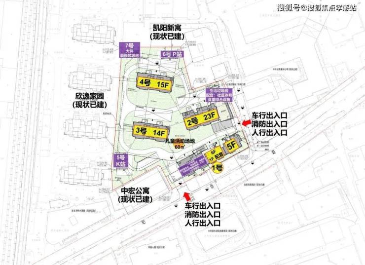 2号楼23层高层,3号楼14层,4号楼15层,2号楼的东北角是生活垃圾房,社区体育配套,食堂综合设施;