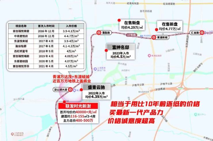 说实在的,价格还是很有诚意的,因为青浦新城早在10年前,也就是2016年新房价格已经3.9-4.1万/㎡,项目首开价格居然回到板块10年前!