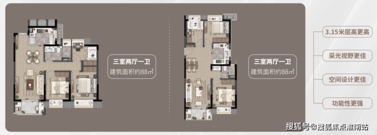 项目目前在售建面约72-88㎡2-3房,总价门槛较低。