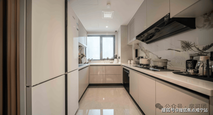 以约109㎡的大三房为例,U型厨房在飘窗的巧妙加持下更加宽敞,操作更便捷,更是能够预留出双开门冰箱位置,堪称是空间利用的革命性提升。