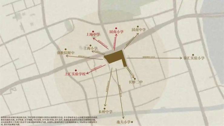 地块周边教育资源非常丰富,包括被誉为“华育中学亲儿子”的上海四大名校之一逸夫小学、上海中学、华东理工大学附中、上海小学、徐汇实验小学、长桥中学等。 (学校对口情况须在本小区交付后以政府教育主管部门及校方的最新政策为准)