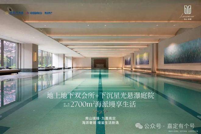 恒温泳池会所——板块难得的奢享品位 :嘉定主城稀缺建筑面积约2700㎡会所空间,其中建筑面积约1500恒温泳池会所、地面建筑面积约1200㎡,对标星级酒店的标准,将艺术品位、生活意趣、空间意境与休闲体验完美融合,会所外的下沉星光悬瀑水景庭院同样是区域内仅有的奢华配套。想象一下,当你在健身房挥汗如雨或在泳池里尽情畅游时,落地窗外就是琉璃水光和自然景观的诗意碰撞。