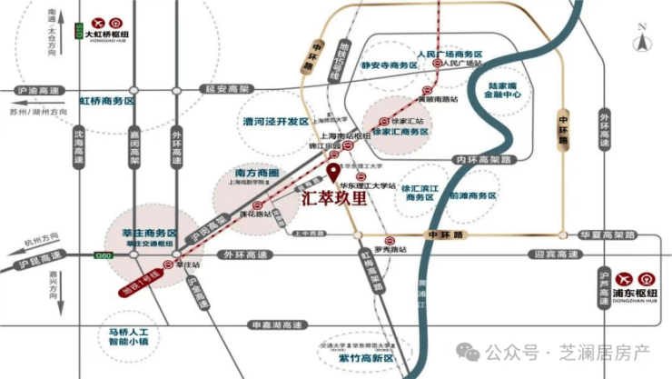汇萃玖里位于闵行与徐汇交界的黄金中环地带,中环上中西路下匝口,虹梅南路与益梅路交汇处。这一区位优势,该项目既享徐汇繁华,又得闵行静谧。交通便捷出行:距离1号线莲花路站约1.1公里,乘坐地铁1站可到达上海南站,4站直达徐家汇,9站到人民广场。对于自驾出行的业主,周边有沪闵高架、中环线、虹梅路高架等……5条高架线路环绕,到虹桥高铁机场约25分钟车程,到上海南站仅需9分钟。