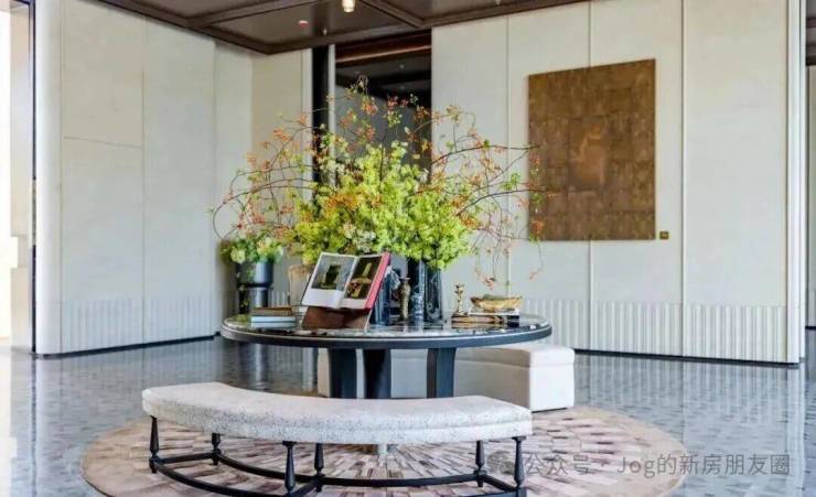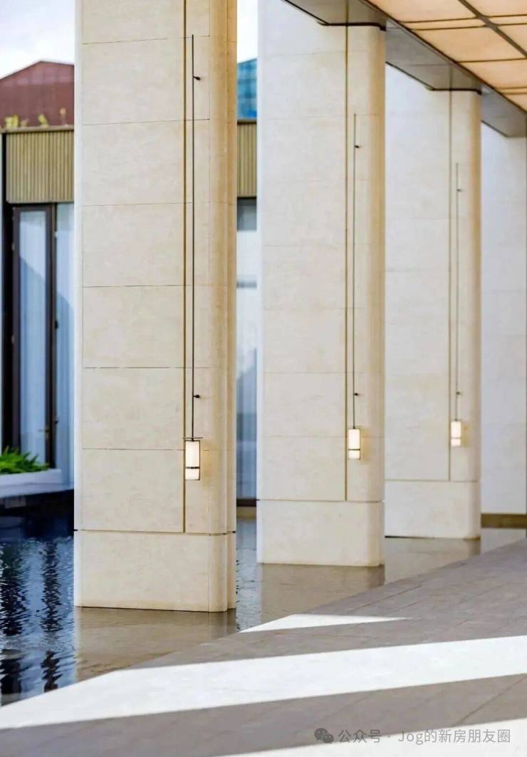 弧形石材工艺因其造价高、耗料多而闻名,而 招商序从门庭、游廊、转换厅、风雨连廊到下沉式庭院,一以贯之的弧形石材,形成了统一的设计语言 , 营造视觉上的柔和高级感, 招商序将这种传统豪宅的设计手法应用到了 700万级的产品之上,真的是降维打击。