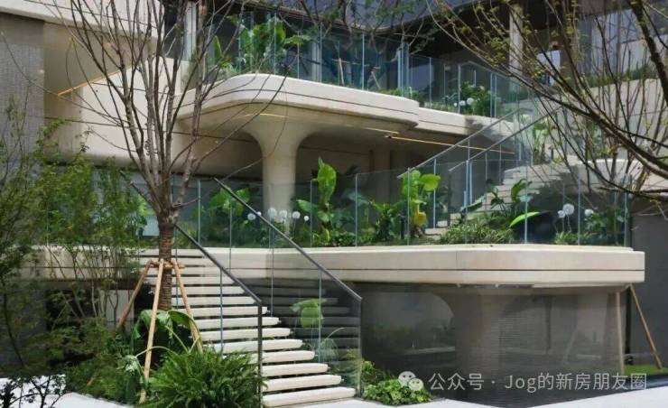 点睛之笔在于 4层悬浮式阶梯, 设计理念据说来自全球十二大奢华酒店之一的 迪拜丽晶公寓, 每一个观景露台都种植着不同的植被,一步一景, 更重要的是,不同的露台对应着不同的观景视野点,将不同高度的下沉式庭院景观,通过极其优雅的方式传递给了业主。 这个归家体验可以说是拉满了!