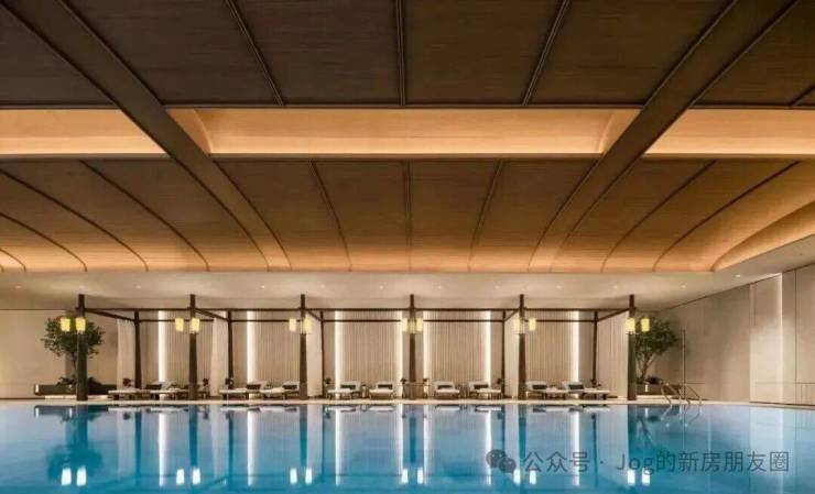 最让我心动的是这个无边泳池! 招商序以 “室内外自然无界”的设计手法,将无边泳池与庭院美景在视觉上连成一体,当阳光映照跃动的蔚蓝,业主畅游的同时还能包揽庭园诗意;深色木架构撑起白色帏幔,池边躺椅的设计也极具豪华酒店的优雅与尊贵,穹顶则延续着海派穹顶的经典设计元素,以细腻的木纹铝板打造。 以往只在奢华度假酒店的体验在家楼下的会所也能拥有!