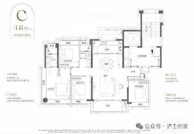 比起市面上普遍的三开间朝南动静分区户型,该户型至少有3大爆点: