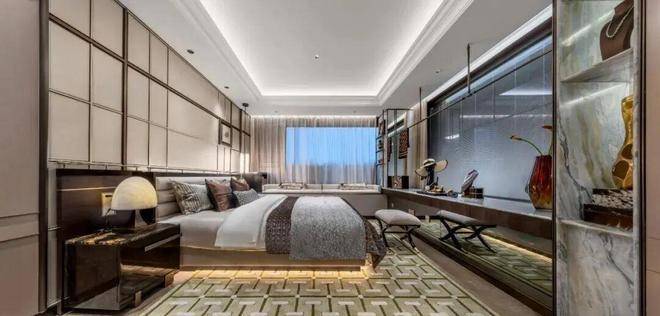 主卧超大尺度套房设计,自带270°转角L型飘窗,实现无界视野和优异采光,躺在床上也能享受环幕赏景!