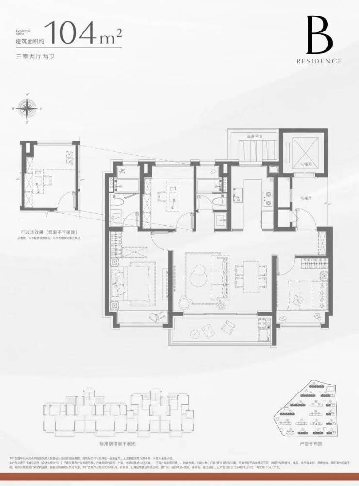 建面约96㎡3房,经典飞机户型,精致进阶