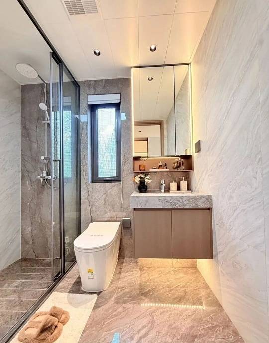 项目涵盖建面约96-195㎡的三至四房洋房与联排别墅,满足不同家庭结构需求。洋房均价约4.3-4.9万元/㎡,总价400万起,精装交付,配备日立中央空调、迈迪龙新风系统、唯宝洁具、高仪龙头等国际一线品牌,打造“隐形奢华”空间。联排别墅均价约7-7.7万元/㎡,总价900万起,毛坯交付,独门独户,享前庭后院与南北双露台,首层6.3米挑高LDK宽厅,约5.4米层高地下室可改造为双层空间,居住体验卓越。