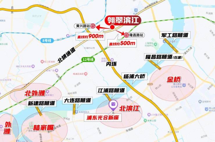 再加上内环和五条过江隧道(包括桥)的加持,像东外滩核心区、北外滩核心区、陆家嘴、世纪公园、南京西路、外滩等都是业主未来的生活圈。