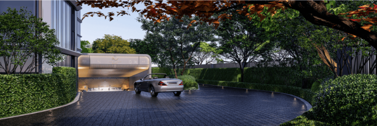 约3.8m-4.5m的地下车库层高,下挖的成本更高,但是给业主营造更大气的归家体验。