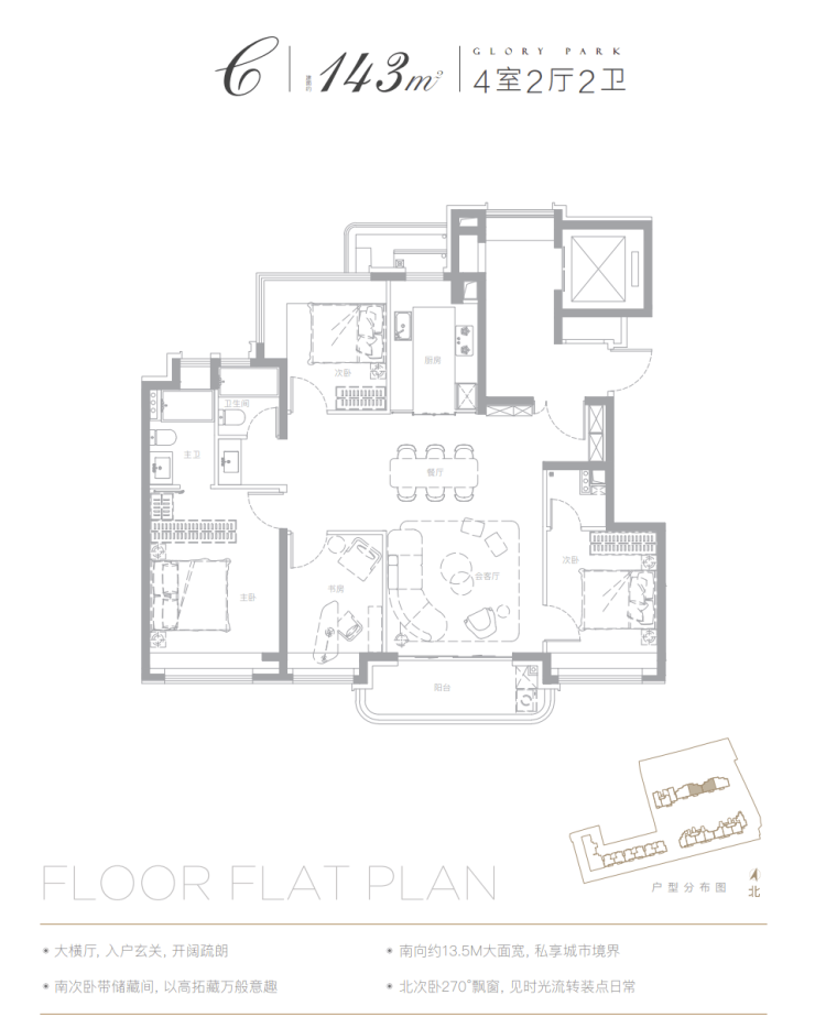 4房2卫 的设计,这个户型可以承载三代同堂的全生命周期需求,实用性拉满。也是四口之家,二孩家庭的最佳性价比选择。