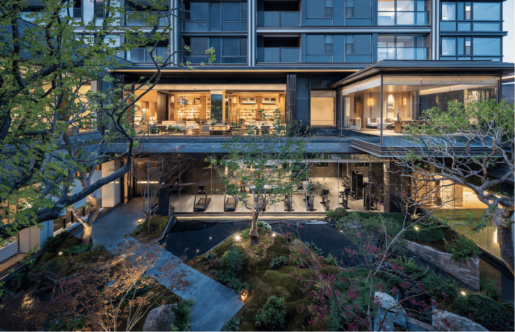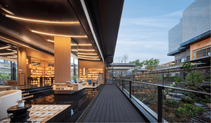 园林设计园藏天地、重构山水,在立体空间中重构叠山理水的意境,充分结合上海的在地文化,打造知停而行的庭园;