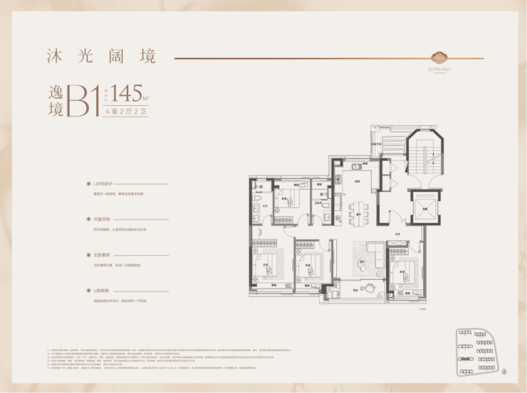 户型特点:4开间朝南,LDK一体化设计,南北通透。客厅面宽达4.3米,外接4.8米长阳台,采光通风俱佳。主卧带270°转角飘窗,主卫也有飘窗赠送。全屋飘窗设计,独立电梯厅,私密性与尊享感强。