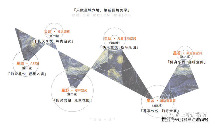 社区园林由笛东执笔,打造[ 星阙 ] [ 星河 ] [ 星野 ][ 星际 ] [ 星云 ] [ 星荟 ]六大园林盛境,焕新园境美学,让每一次归家都成为穿越风景的美好之旅。