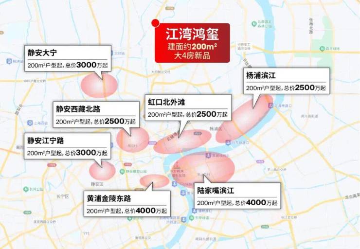 另一方面,在如今普遍约10万+的上海中环沿线,以7万+的价格就能买建面约200㎡起大4房,目前只有江湾鸿玺一盘。且项目近期有特价房优惠活动,折合下来单价7万不到。