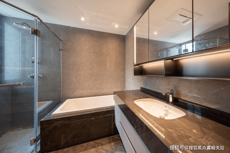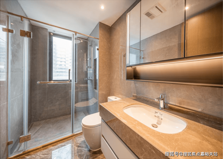 主卧采用套房设计,融合了独立卫浴与衣帽间,玻璃的柜门和自动感应的柔和灯光让您存储其中的衣物饰品更处处彰显精致,同时也满足私密空间的多重功能需求。