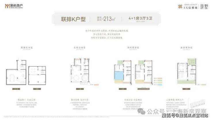 另外配置下沉式庭院、约2500㎡地下会所以及约3000㎡主题架空层;其中地下会所包含泳池、健身房、瑜伽室、水吧区、私宴厅等!