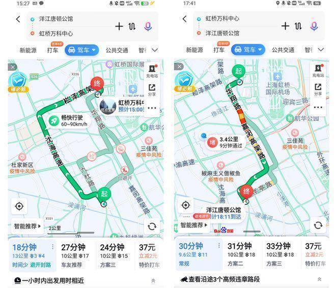 唐顿公馆售楼处电话:400-8787-740【官网】自驾方面,周边有沪松公路、嘉闵高架、沈海高速等主干道,通达虹桥核心非常方便。我截了一张不堵车,一张上下班高峰的百度地图导航,供大家参考: