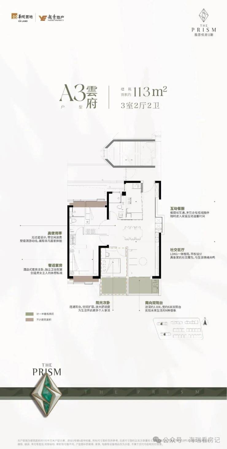 二期113㎡三室两厅两卫户型图,一共三种,每一种都透着华润对刚需的小心思。