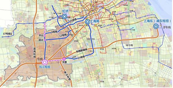 加快建成松江枢纽,规划中地铁9号线和23号线,快线东西联络线和嘉青松金线,共计4条轨交在此交汇。再加上12号线西延伸段将也将于今年开始动工。据悉,松江未来有望在嘉松公路以35号线将9号线与17号线南北贯通,届时将有可能升级为六轨交汇的松江新城。