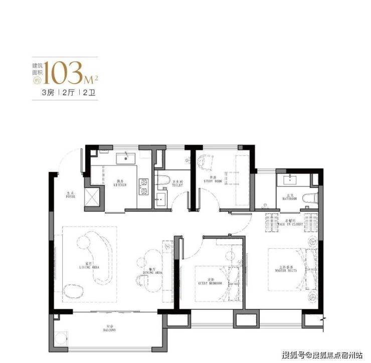 产品:103㎡、107㎡的三房两厅两卫及123㎡、129㎡的四房两厅两卫