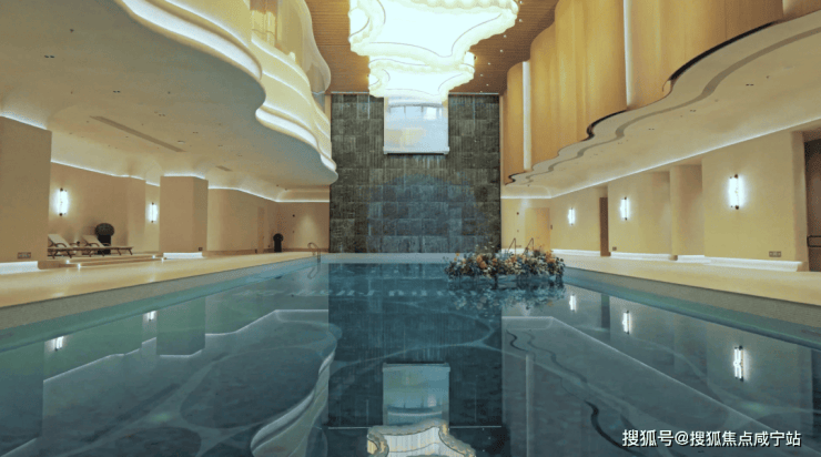 泳池灯的弧线造型,如同飘带一样,这是对项目蝴蝶振翅外立面的致敬。