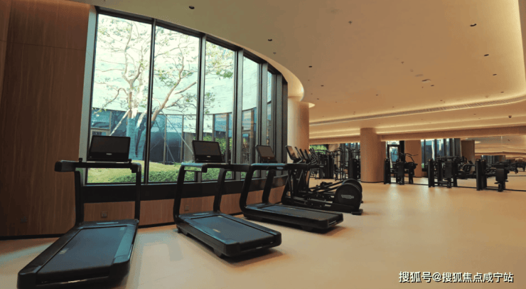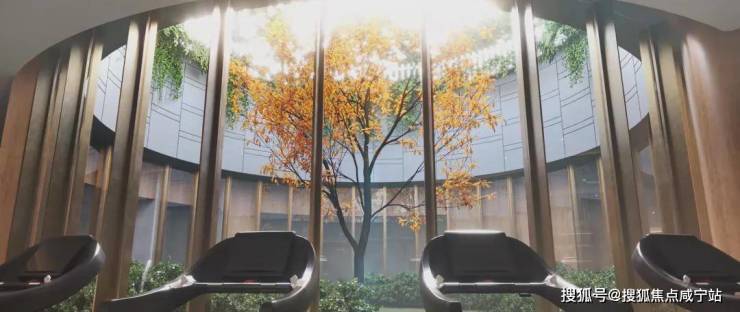 健身空间,配置华尔道夫酒店同款泰诺健健身器材,被称为“健身器械中的法拉利”,正对采光井,自然光的引入,折射出地面材质的温润,高大乔木置于眼前,寓意向上生长。