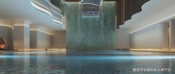 自然天光的引入,映射在整座镜面泳池之上,是整座城市上空的风景。高达约10米的跌水瀑布,带来了非常强烈的视觉冲击
