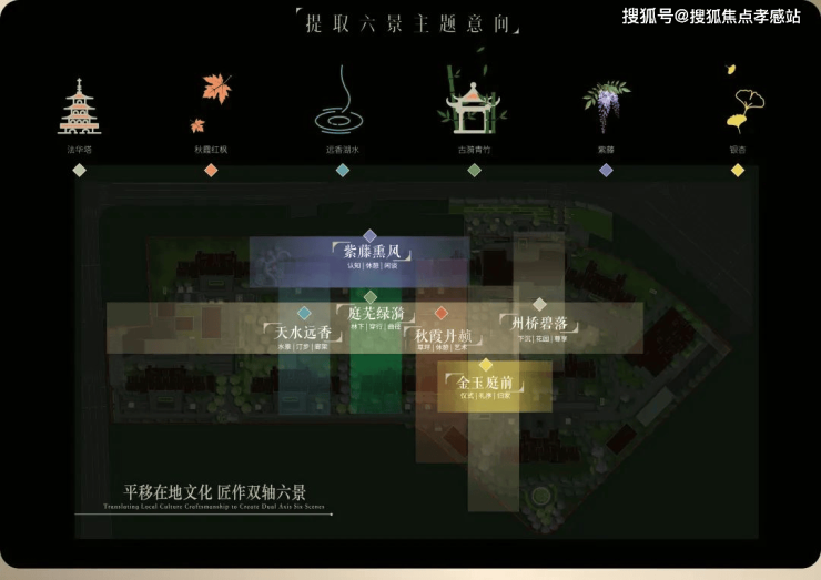 项目园林对轴线的运用同样出彩,堪称神来之笔的“双轴六境”,由“礼序归家轴+景观漫步轴”纵横交织,融在地文化,以“非遗”竹编形制,铺陈园林步道,同步淬取“州桥壁落”、“紫藤熏风”、“天水远香”等嘉定古今6景,提炼细节元素及专属色系,营造主题园林空间。