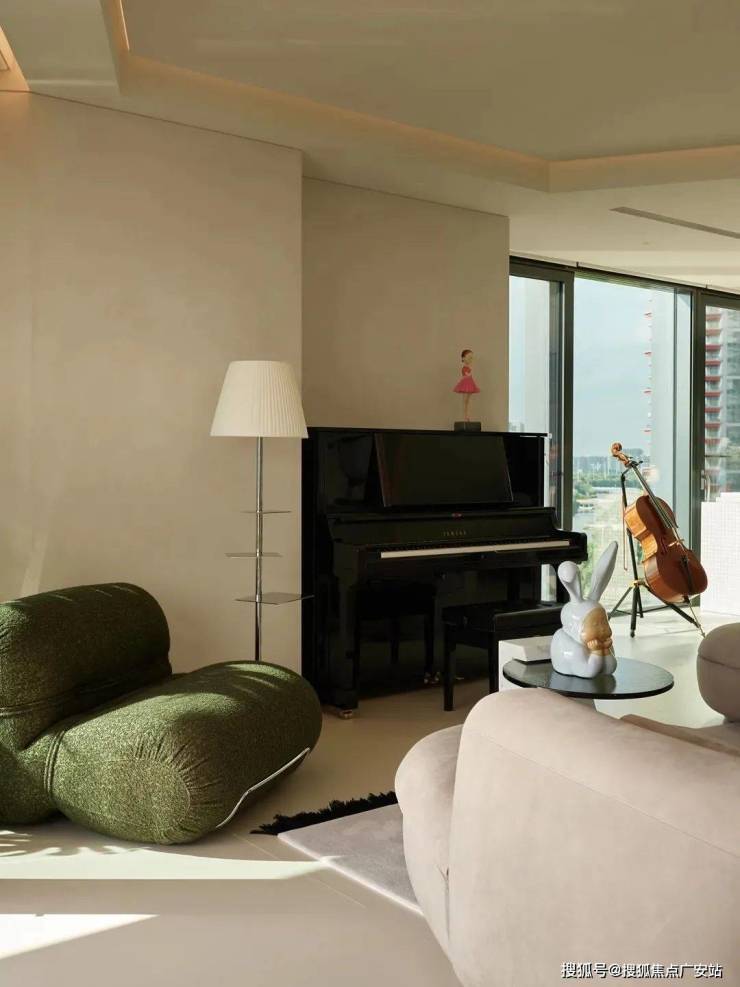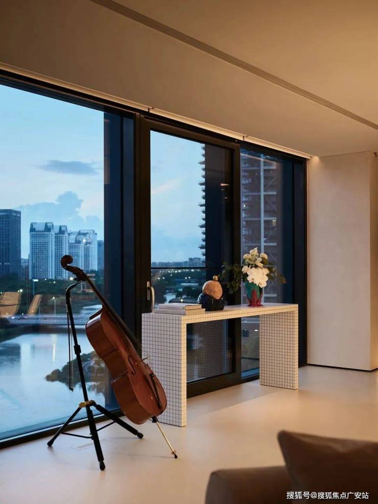 在功能上,设计着重凸显家庭的亲情与关照:有温暖的通道感应灯,迎接工作晚归的男业主;有风景和视野绝美的厨房,犒劳为家烹饪的女主人;有各具特色的卧室,给每个家庭成员一方私属的天地;有钢琴、大提琴和当代艺术的绘画与陈设,让生活沉浸在艺术的熏陶之中,滋养精神的田园。