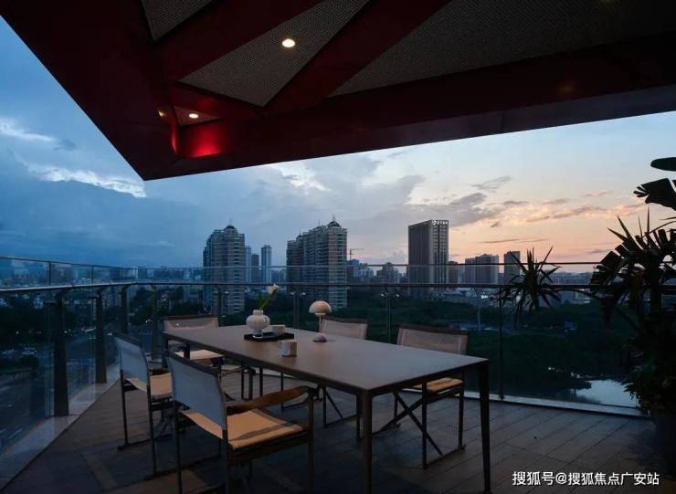 帝宝建筑标志性的军舰甲板造型的阳台,放置着轻松的户外家具,也让人与城市、公园、天空之间的距离更加接近。