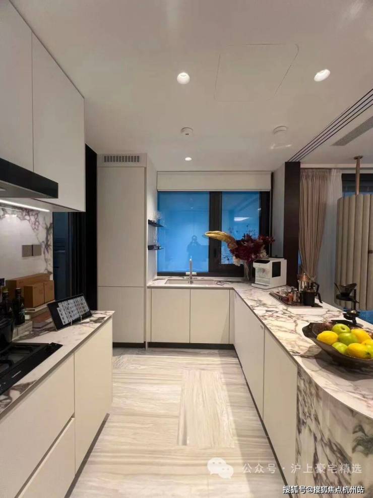 例如宝格丽大理石打造的西厨岛台、铂浪高的净水三合一水龙头和一体式大水槽、霍尼韦尔的前置过滤器、全屋软水以及末端净水器系统、来自意大利的燃气热水器品牌法罗力、德国唯宝卫浴、当代龙头及花洒等等顶豪超配精装皆在眼前!甚至还有全屋华为智能家居系统配置,奢华配置质感十足!