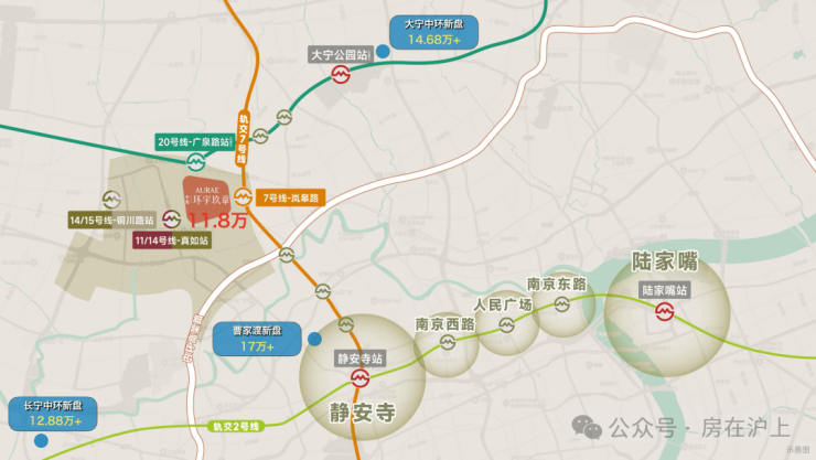 以项目为起点,直线距离在建的20号线广泉路站约400米,距7号线岚皋路站约500米(4站即达静安寺,并可换乘2号线前往多个城市商圈)。