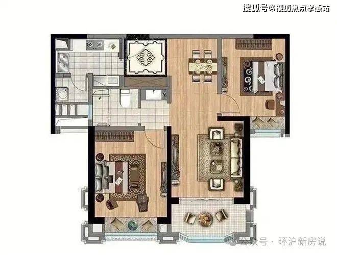95m²2房2厅2卫户型