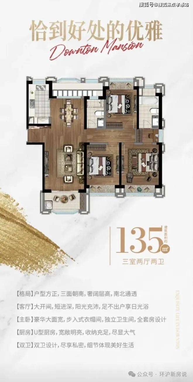 135m²3房2厅2卫户型,上海洋江唐顿公馆预约热线:400-8855-420√√☎