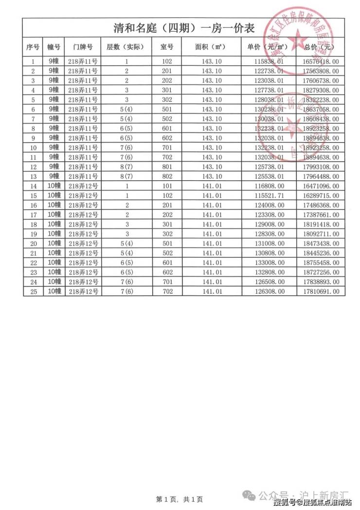 项目一房一价表▼