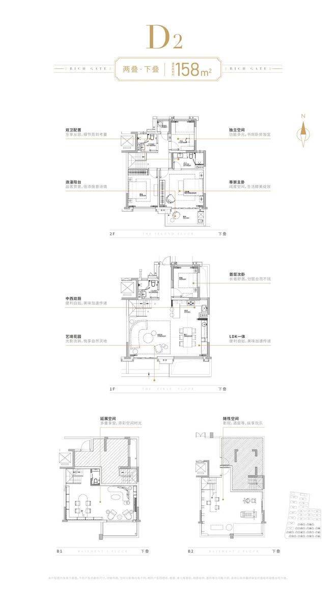上下叠户型设计基本类似,下叠2F空间尺度稍大一些,书房相当于一个次卧的尺度,功能性更强!