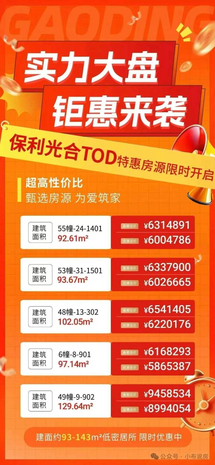 前后2个地王的未来售价预计都超过7万/㎡,占据更核心位置的超级大盘——保利光合TOD总价仅约600万级,洼地属性已现!