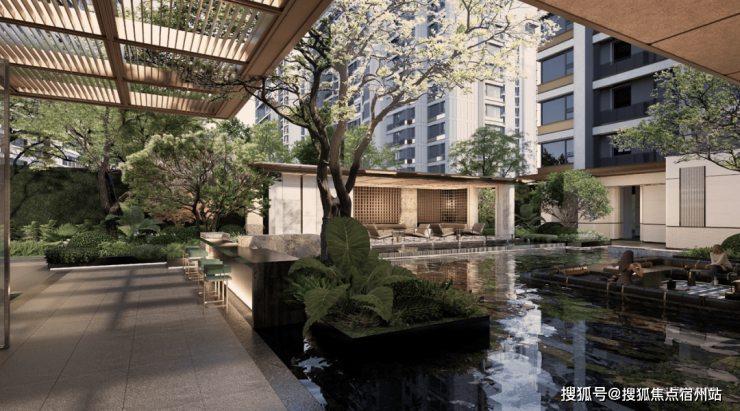 景观布局上,不得不说保利·虹桥和著更是令人惊艳!中庭的大树剧场,移植了超60年树龄的铁冬青,价值百万;约10米长的蓝钻大理石水景,由匠人手工精雕细琢;地面铺设爱马仕灰奢石拼花,尽显海派风情;奢适躺平水院,甄选西潘多拉和日出金霞发光石,宛如奢华酒店,未来业主可在此休憩、会客、社交,尽显豪宅排面。