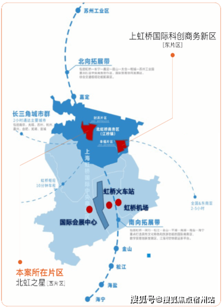 北虹桥作为虹桥国际开放枢纽的创新承载区,兼具“长三角、大虹桥”的双重区位优势,将承载虹桥国际中央商务区主导功能,成为链接辐射长三角的创新经济集聚区、中央商务配套区和高品质国际化社区。