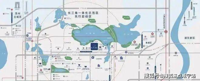 项目落子苏州吴江汾湖高新区,与上海青浦仅800米直线距离,真正实现“上海工作,湖居住宅”的梦想: