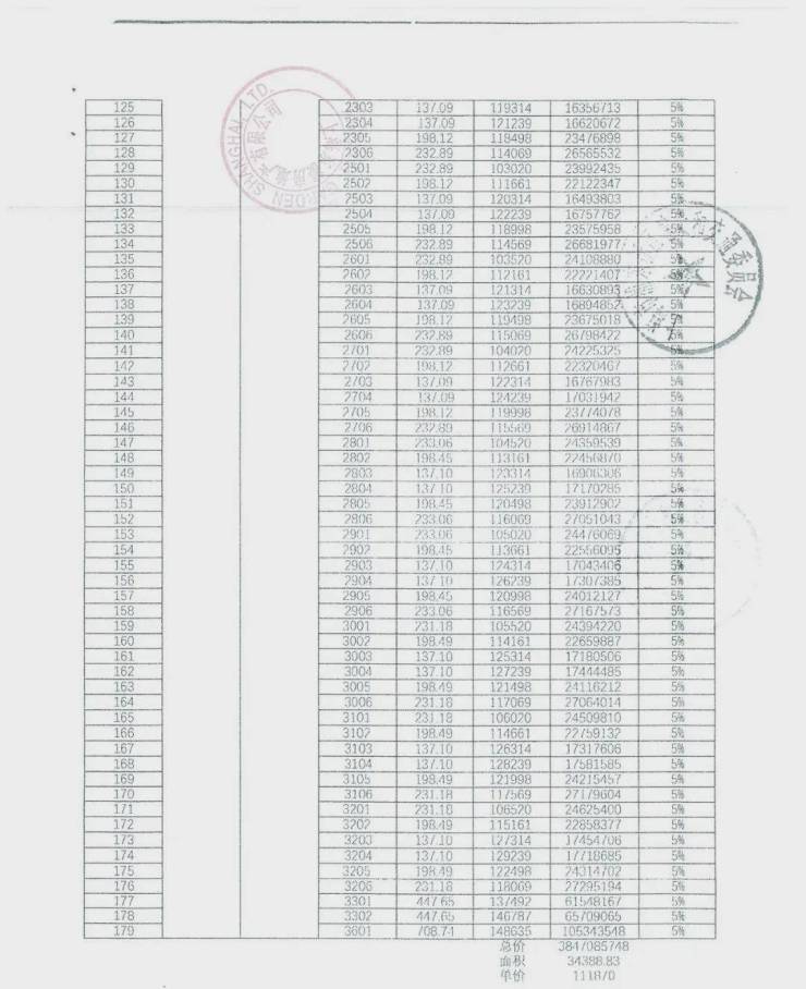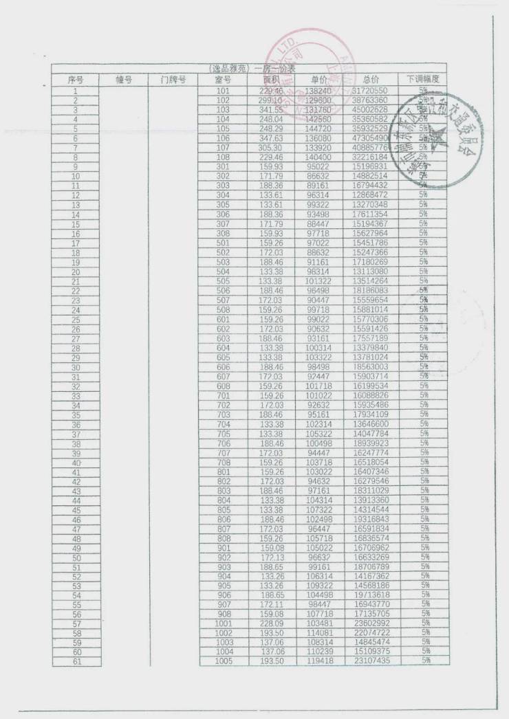 前期一房一价表:
