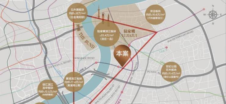 陆家嘴、外滩、前滩环抱,上海资本金三角核心位置。享三大中心规划利好,可谓滨江一线至贵之焦点。