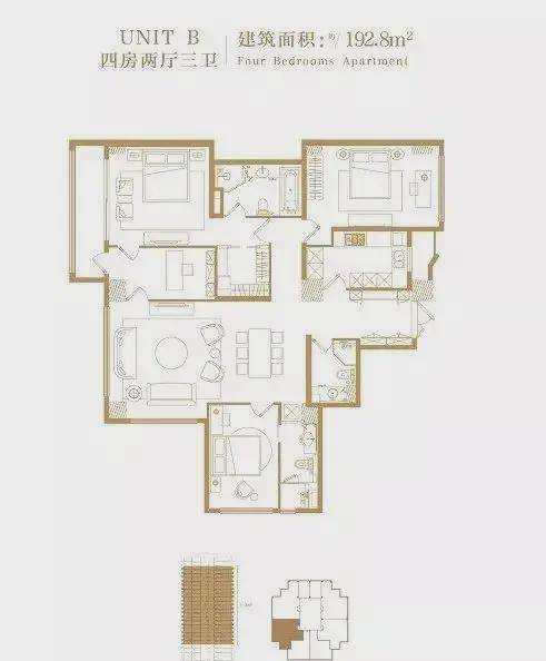 本期推出共175套,目前主推建筑面积131~226平3房,另有非标准户型200~500平底楼,顶楼复式。套房设计,套内独立卫生间,独享私人空间。