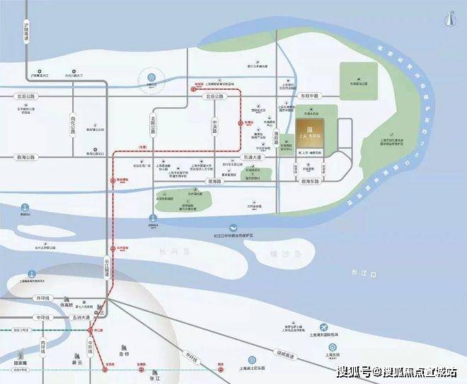 交通配套方面:申崇一线、申崇二线、轨道交通崇明线——东滩站(在建)。