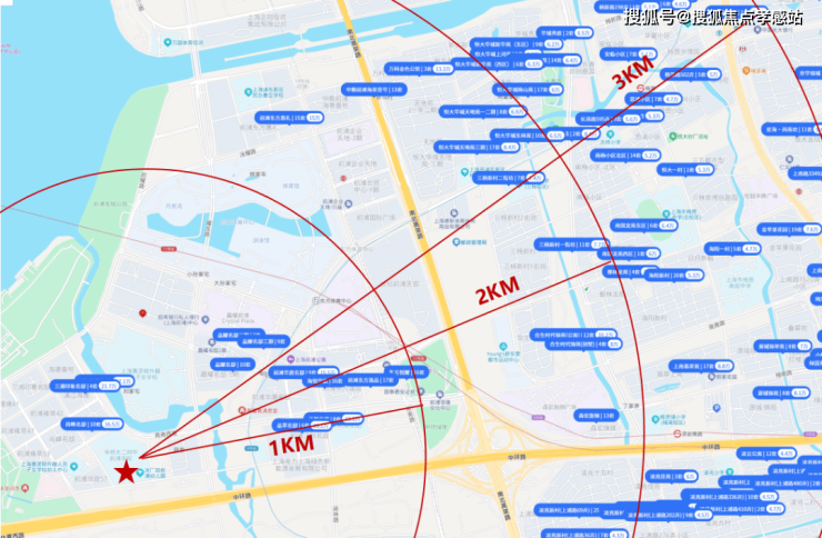 就以前滩华二为例,学校1km以内的房价均为10万+,2km范围内开始出现10万以内的房源,距离拉到3km,最高单价则为8.8万。