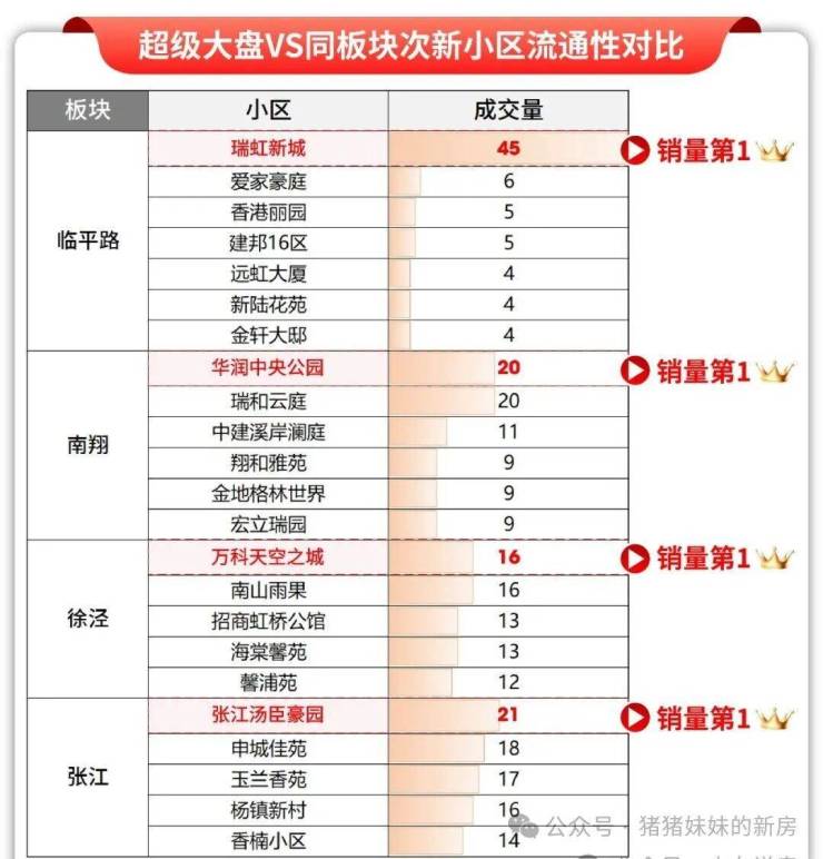 从过往表现来看,但凡能定鼎区域大盘的项目,比如瑞虹新城、汤臣豪园、华润中央公园、万科天空之城,首先销量即流通性区域第一!