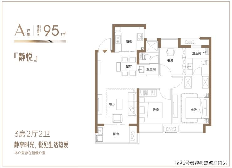 建面约 95㎡三房两厅两卫:爆款主力户型,刚需预算享改善品质